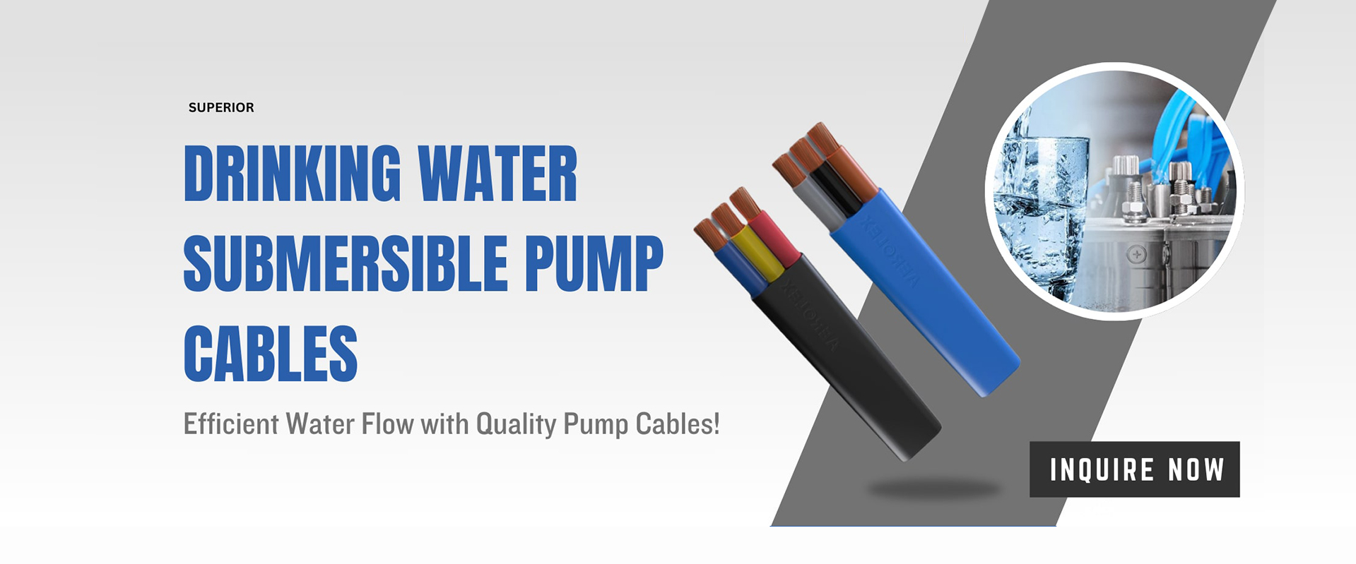 Durable, flexible submersible pump cables for deep borewells, ensuring safety, efficiency, and reliable performance in tough wet conditions.